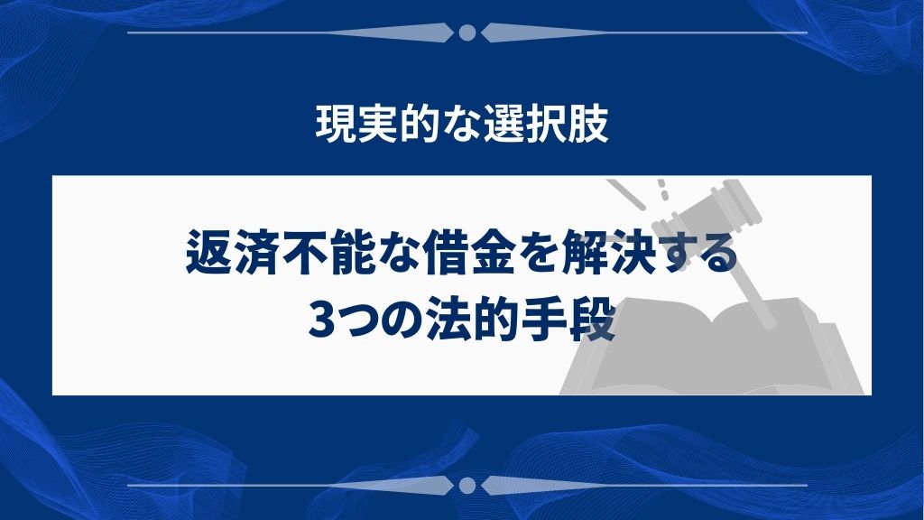 借金の返済が難しくなったとき、「自分が悪いんだ」「もう打つ手がない」と追い詰められる方は多いでしょう。しかし、法律はそんなあなたの状況に応じた解決策を用意しています。